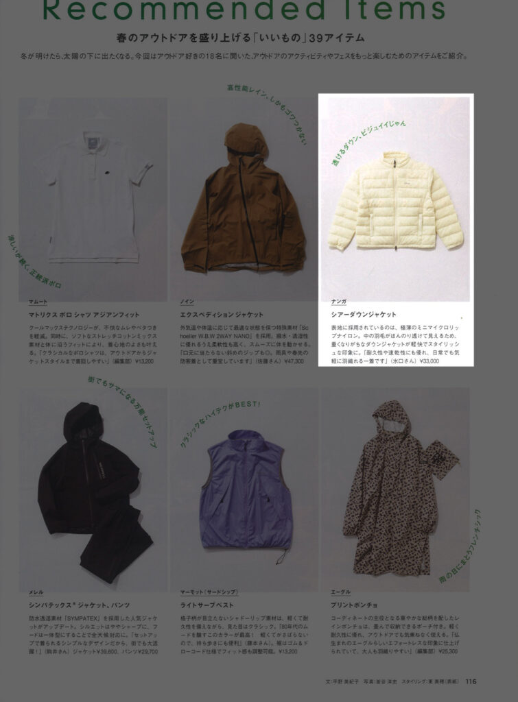 『CREA』4月号 2026.03.07 Sat - Published 掲出ブランド NANGA NANGA 『CREA』4月号 NANGA【シアーダウンジャケット】 NEWS PRESS 掲出ブランド NANGA