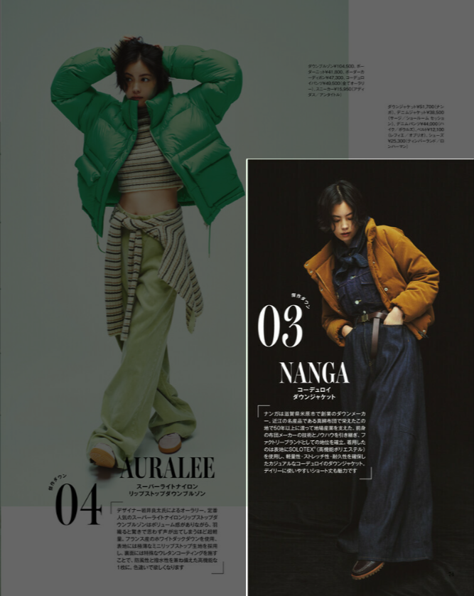 『otona MUSE』1月号 2025.11.28 Fri - Published 掲出ブランド NANGA NANGA 『otona MUSE』 NANGA【CORDUROY SHORT DOWN JACKET W】 NEWS PRESS 掲出ブランド NANGA