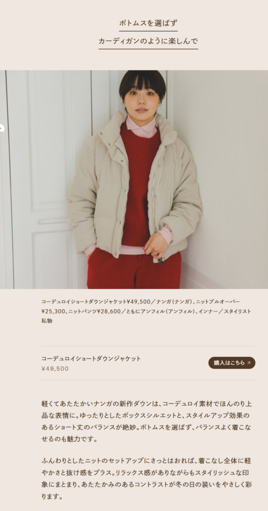 リンネル.jp 2025.11.14 Fri - Published 掲出ブランド NANGA NANGA リンネル.jp NANGA【コーデュロイショートダウンジャケット】 NANGA【コーデュロイショートダウンジャケット】 NANGA【スタンドカラーダウンジャケット】 NANGA【スタンドカラーダウンジャケット】 NANGA【スタンドカラーダウンジャケット】 NANGA【ダウンポンチョマフラー】 NANGA【ノーカラーダウンコート】 NANGA【ダウンポンチョマフラー】 NANGA NEWS PRESS 掲出ブランド NANGA