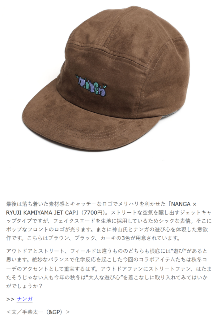 &GP 2025.10.12 Sun - Posted 掲出ブランド NANGA NANGA &GP NANGA【NANGA×RYUJI KAMIYAMA】 NANGA【NANGA×RYUJI KAMIYAMA コーチジャケット】 NANGA【NANGA×RYUJI KAMIYAMA スウェット】 NANGA【NANGA×RYUJI KAMIYAMA ロングスリーブ Tシャツ】 NANGA【NANGA×RYUJI KAMIYAMA ジェットキャップ】 NEWS PRESS 掲出ブランド NANGA