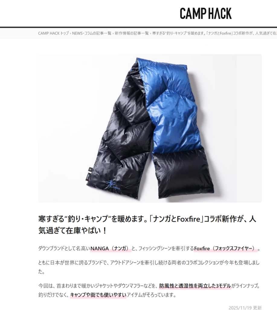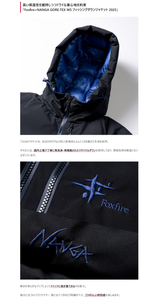 CAMP HACK 2025.11.19 Wed - Posted 掲出ブランド FoxFireNANGA NANGA, Foxfire CAMP HACK NANGA×Foxfire NANGA×Foxfire【GORE-TEX WS フィッシングダウンスタンドカラージャケット 2025】 NANGA×Foxfire【 GORE-TEX WS フィッシングダウンジャケット 2025】 NANGA×Foxfire【NANGA DOWN MUFFLER】 NANGA×Foxfire NEWS PRESS 掲出ブランド FoxFireNANGA