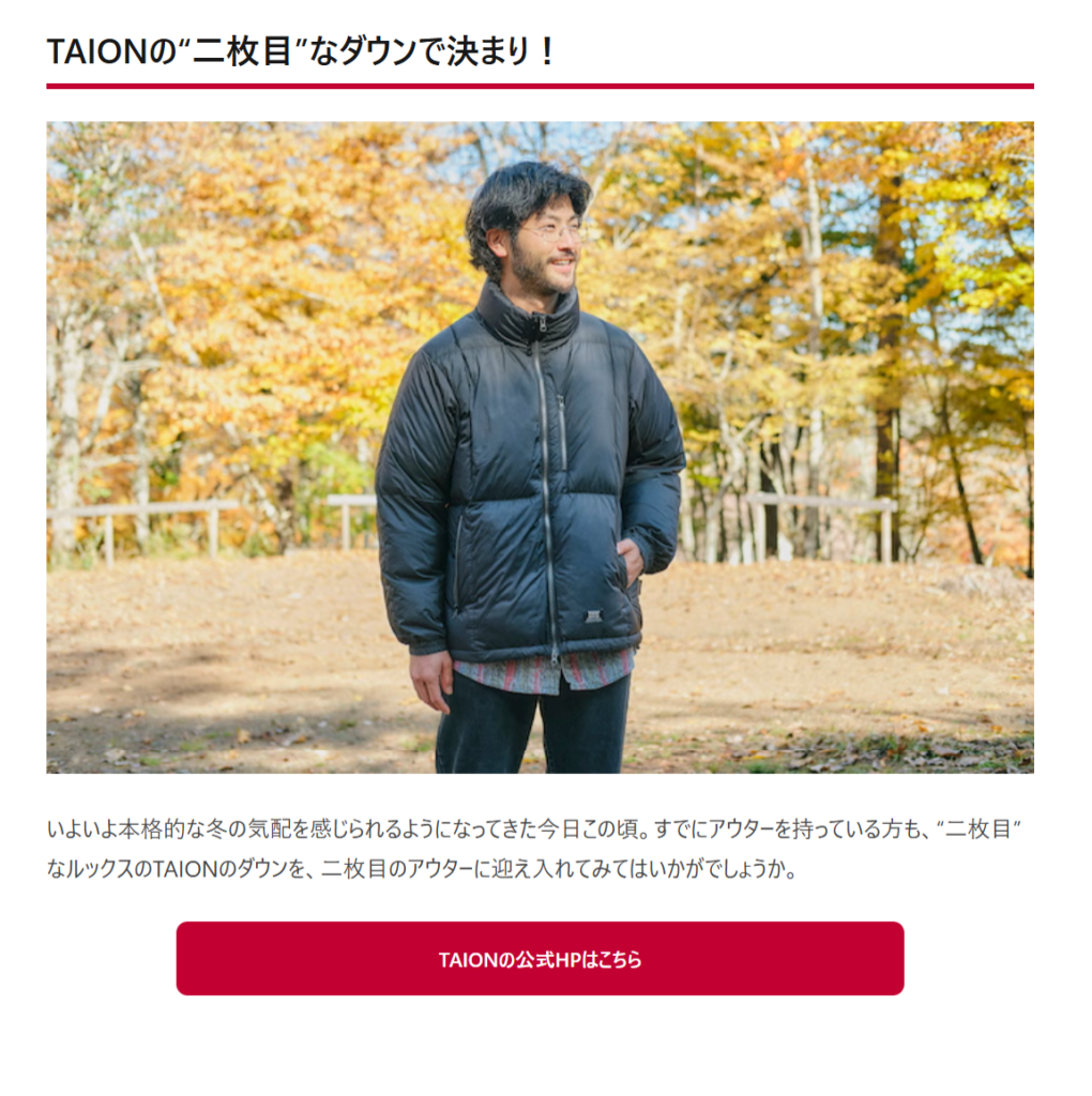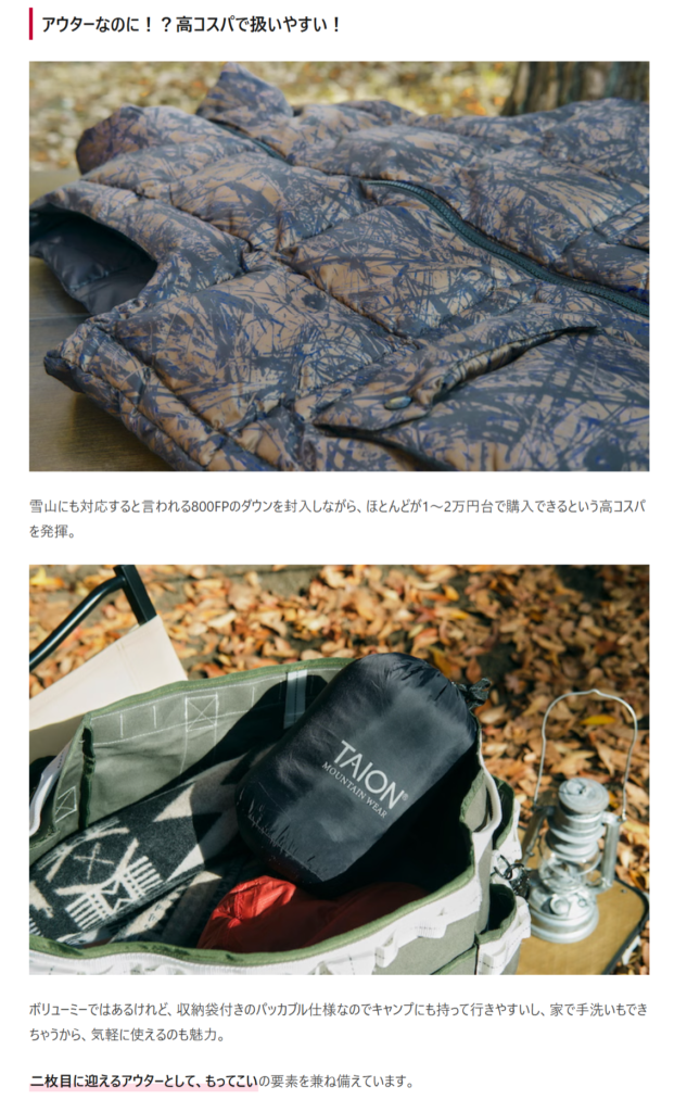 CAMPHACK 2025.11.28 Fri - Posted 掲出ブランド TAION TAION CAMPHACK TAION【マウンテン パッカブル ボリュームダウンジャケット】 TAION TAION TAION【CR ワークパーカー(+ボリュームダウンジャケット)】 TAION【マウンテン パッカブル ボリュームダウンジャケット】 TAION【マウンテンパッカブル ボリュームフードダウンコート】 TAION【マウンテンパッカブル ボリュームフードダウンコート】 TAION【マウンテンパッカブルボリュームダウンパーカー】 TAION【マウンテン パッカブル ボリュームダウンジャケット】 TAION【マウンテン パッカブル ボリュームダウンベスト】 TAION【マウンテン パッカブル ボリュームダウンパンツ】 TAION TAION TAION NEWS PRESS 掲出ブランド TAION