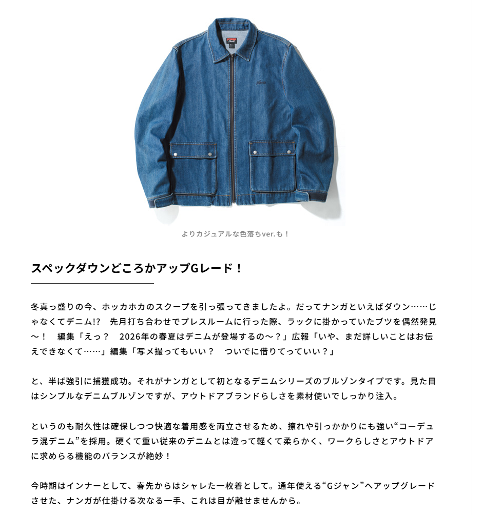 e-Begin 2025.12.20 Sat - Posted 掲出ブランド NANGA NANGA e-Begin NANGA【デニムブルゾン】 NANGA【デニムブルゾン】 NEWS PRESS 掲出ブランド NANGA