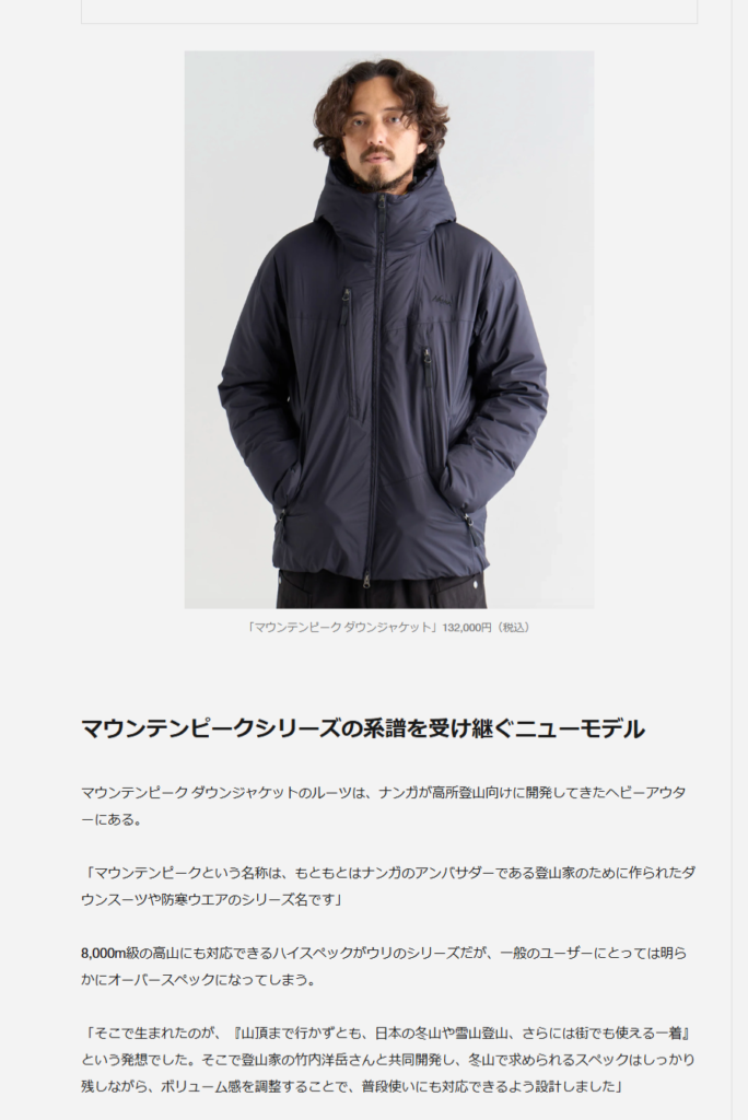 Fashion Tech News 2026.01.27 Tue - Posted 掲出ブランド NANGA NANGA Fashion Tech News NANGA【MOUNTAIN PEAK DOWN JACKET】 NANGA【MOUNTAIN PEAK DOWN JACKET】 NANGA【MOUNTAIN PEAK DOWN JACKET】 NANGA【MOUNTAIN PEAK DOWN JACKET】 NEWS PRESS 掲出ブランド NANGA