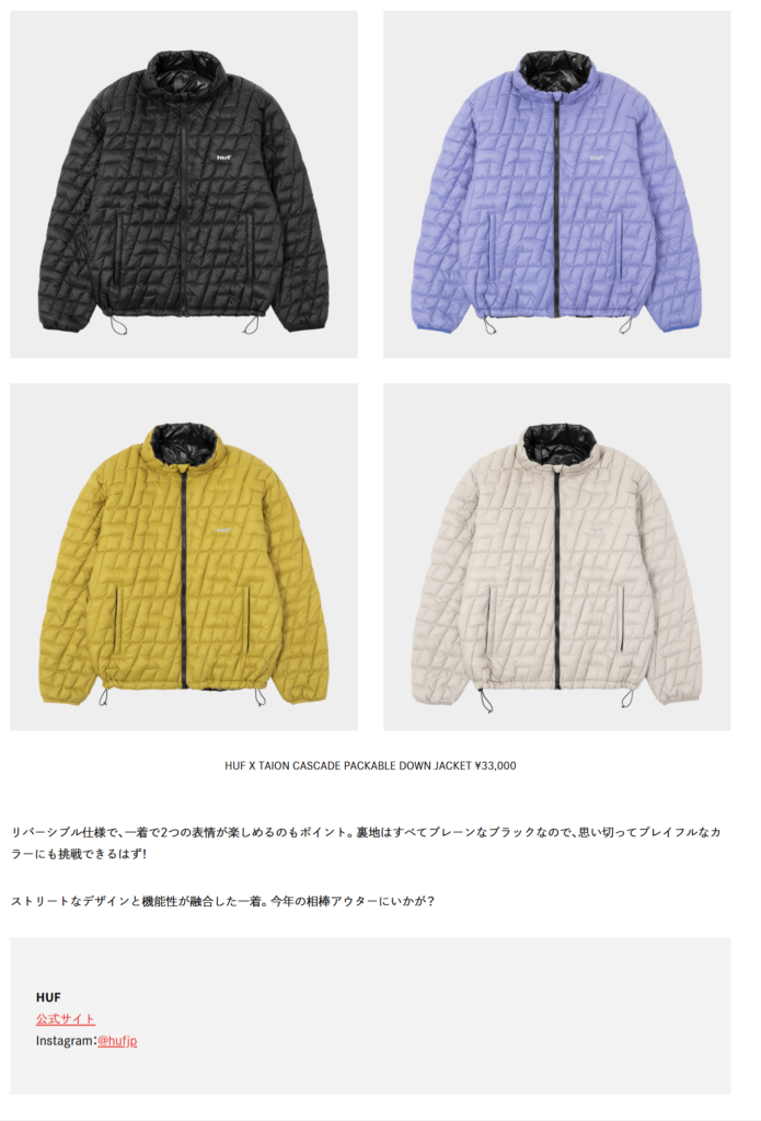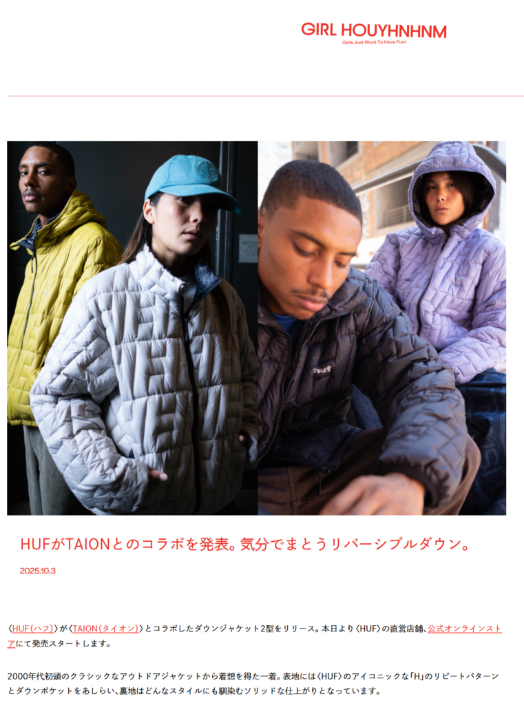 GIRL HOUYHNHNM 2025.10.03 Fri - Posted 掲出ブランド TAION TAION GIRL HOUYHNHNM TAION TAION【CASCADE PACKABLE HOODED DOWN JACKET】 TAION【CASCADE PACKABLE DOWN JACKET】 NEWS PRESS 掲出ブランド TAION