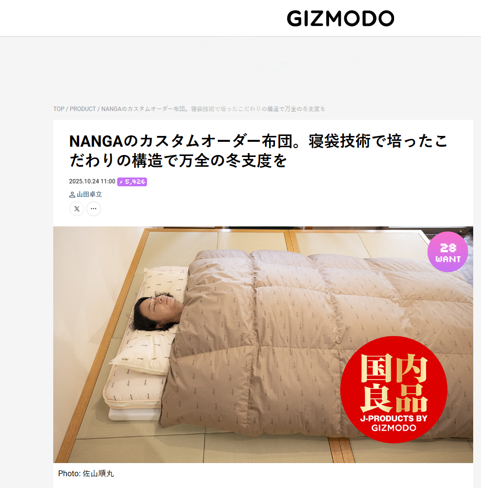 GIZMODO 2025.10.24 Fri - Posted 掲出ブランド NANGA NANGA GIZMODO NANGA【GOOD SLEEPING】 NANGA【GOOD SLEEPING】 NANGA【GOOD SLEEPING】 NANGA【GOOD SLEEPING】 NANGA【GOOD SLEEPING】 NANGA【GOOD SLEEPING】 NANGA【GOOD SLEEPING】 NEWS PRESS 掲出ブランド NANGA