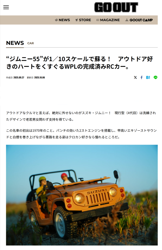 GO OUT WEB 2025.09.27 Sat - Posted 掲出ブランド WPL JAPAN WPL JAPAN GO OUT WEB WPL JAPAN WPL JAAPN【スズキ ジムニー(SJ10 1型) C84 RTR】 WPL JAAPN【スズキ ジムニー(SJ10 1型) C84 RTR】 WPL JAAPN【スズキ ジムニー(SJ10 1型) C84 RTR】 WPL JAAPN【スズキ ジムニー(SJ10 1型) C84 RTR】 WPL JAAPN【スズキ ジムニー(SJ10 1型) C84 RTR】 WPL JAAPN【スズキ ジムニー(SJ10 1型) C84 RTR】 NEWS PRESS 掲出ブランド WPL JAPAN