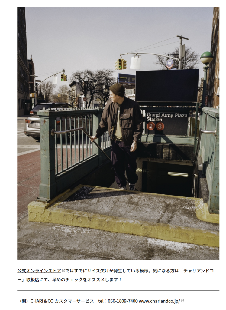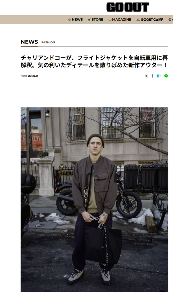 GO OUT WEB 2025.10.24 Fri - Posted 掲出ブランド CHARI&CO CHARI&CO GO OUT WEB CHARI&CO【STABILITY MA-1 JKT】 CHARI&CO【STABILITY MA-1 JKT】 CHARI&CO【STABILITY MA-1 JKT】 CHARI&CO【STABILITY MA-1 JKT】 NEWS PRESS 掲出ブランド CHARI&CO