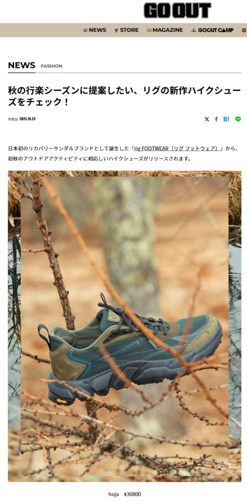 GO OUT WEB 2025.10.23 Thu - Posted 掲出ブランド rig FOOTWEAR rigFOOTWEAR GO OUT WEB rigFOOTWEAR【hoja】 rigFOOTWEAR【hoja】 NEWS PRESS 掲出ブランド rig FOOTWEAR