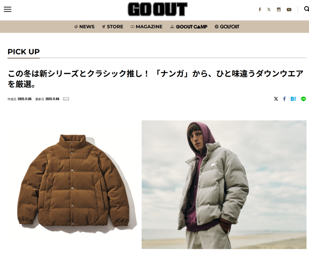 GO OUT WEB 2025.11.06 Thu - Posted 掲出ブランド NANGA NANGA GO OUT WEB NANGA【LITEFORCE DOWN VT】 NANGA【CORDUROY DOWN JACKET(MEN)】 NANGA【LITEFORCE DOWN JKT】 NANGA【LITEFORCE DOWN VT】 NANGA【CORDUROY DOWN JACKET(MEN)】 NEWS PRESS 掲出ブランド NANGA