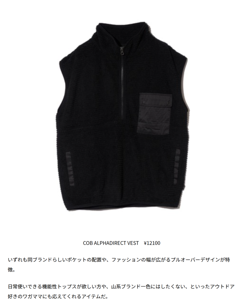 GO OUT WEB 2025.11.23 Sun - Posted 掲出ブランド COBMASTER COBMASTER GO OUT WEB COBMASTER【COB ALPHADIRECT PULLOVER】 COBMASTER【COB ALPHADIRECT VEST】 COBMASTER NEWS PRESS 掲出ブランド COBMASTER