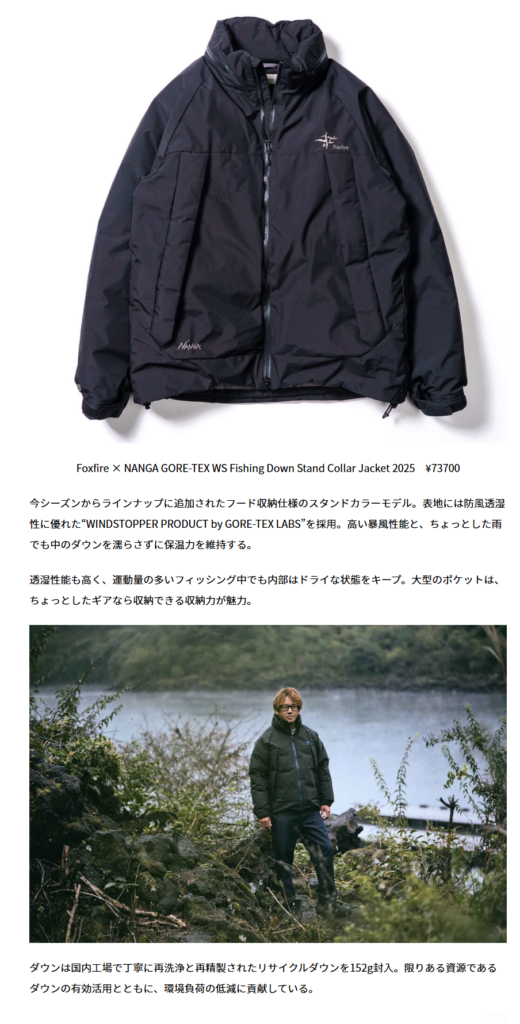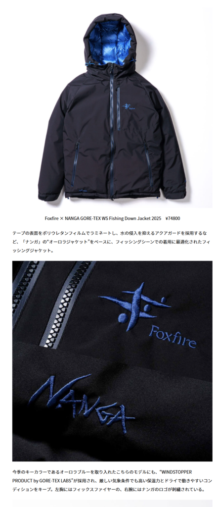 GO OUT WEB 2025.11.10 Mon - Posted 掲出ブランド FoxFireNANGA NANGA , Foxfire GO OUT WEB NANGA×Foxfire【GORE-TEX WS Fishing Down Stand Collar Jacket 】 NANGA×Foxfire【GORE-TEX WS Fishing Down Jacket】 NANGA×Foxfire【DOWN MUFFLER】 NANGA×Foxfire NEWS PRESS 掲出ブランド FoxFireNANGA