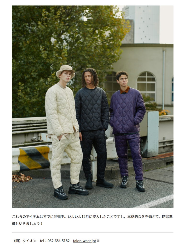 GO OUT WEB 2025.12.02 Tue - Posted 掲出ブランド TAION TAION GO OUT WEB TAION【White Mountaineering × TAION】 TAION【White Mountaineering × TAION】 NEWS PRESS 掲出ブランド TAION