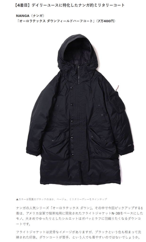 Goods Press 2025.12.10 Wed - Posted 掲出ブランド NANGA NANGA Goods Press NANGA【オーロラテックス ダウンフィールドハーフコート】 NANGA【オーロラテックス ダウンフィールドハーフコート】 NEWS PRESS 掲出ブランド NANGA