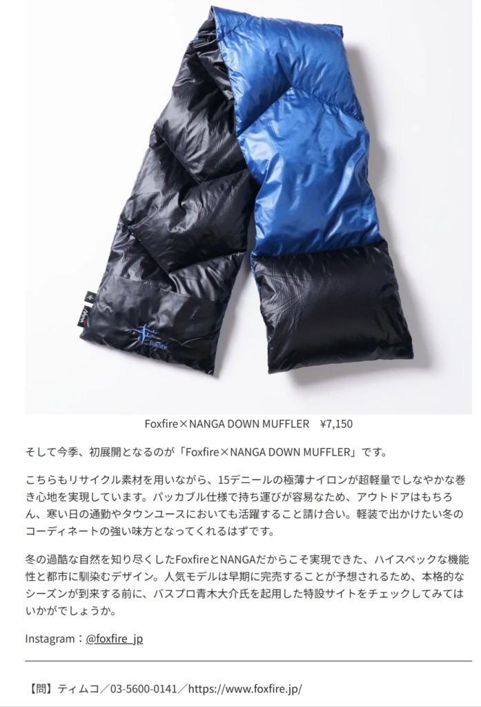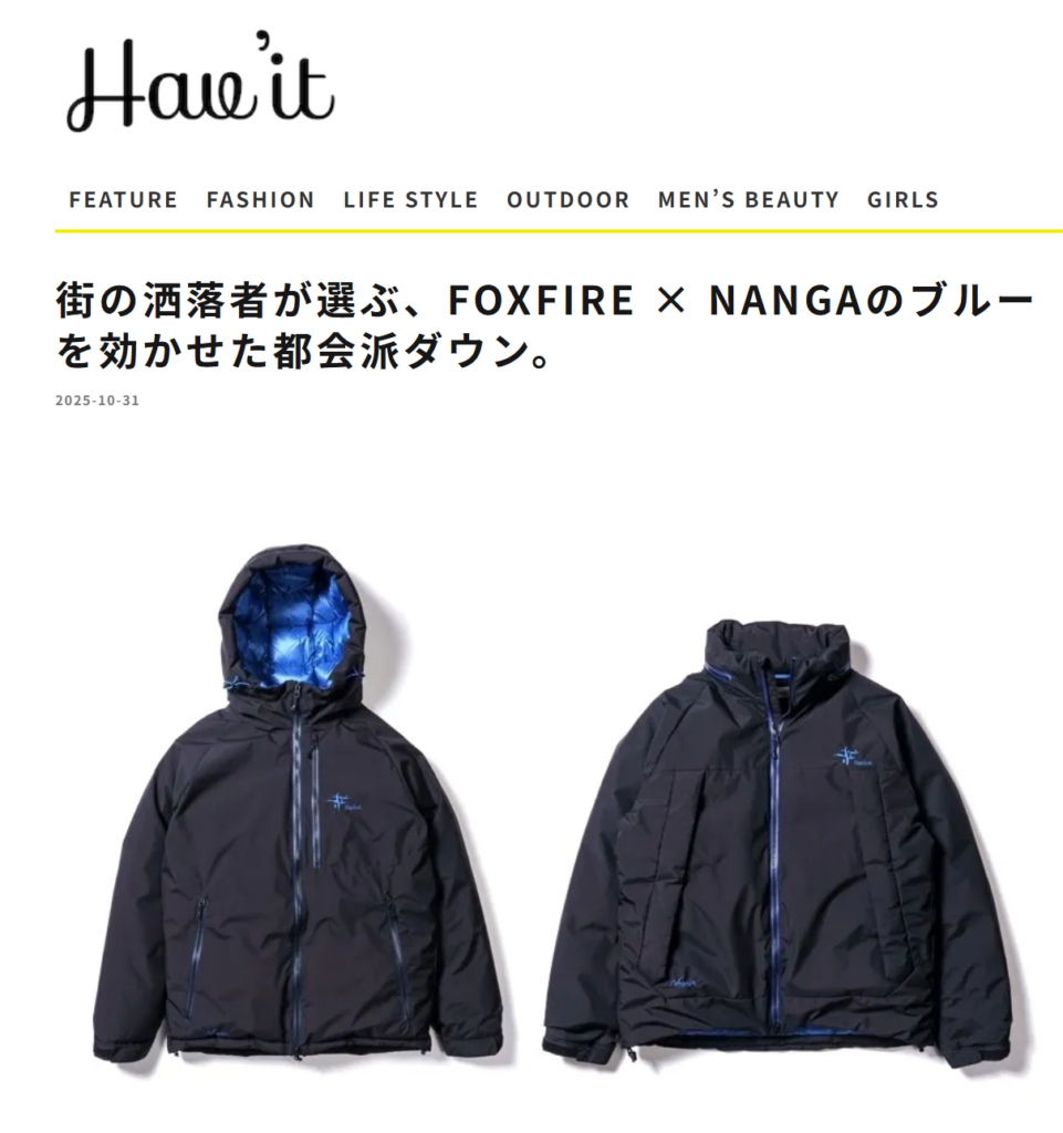 Hav’it Magazine 2025.10.31 Fri - Posted 掲出ブランド FoxFireNANGA Foxfire×NANGA Hav’it Magazine Foxfire×NANGA【Foxfire×NANGA GORE-TEX WS Fishing Down Jacket 2025】 Foxfire×NANGA【Foxfire×NANGA GORE-TEX WS フィッシングダウンスタンドカラージャケット 2025】 Foxfire×NANGA【NANGA DOWN MUFFLER】 NEWS PRESS 掲出ブランド FoxFireNANGA