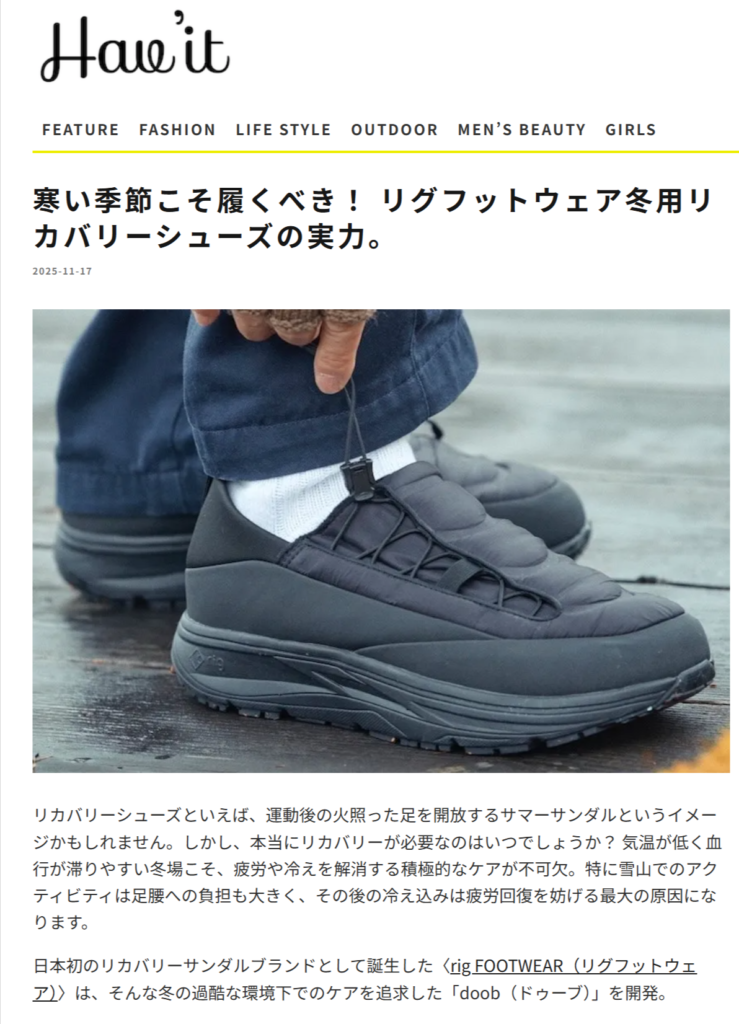 Hav’it Magazine 2025.11.17 Mon - Posted 掲出ブランド rig FOOTWEAR rig FOOTWEAR Hav’it Magazine rig FOOTWEAR rig FOOTWEAR【doob 2.0】 rig FOOTWEAR【doob 2.0】 rig FOOTWEAR【doob 2.0】 rig FOOTWEAR【doob 2.0】 NEWS PRESS 掲出ブランド rig FOOTWEAR