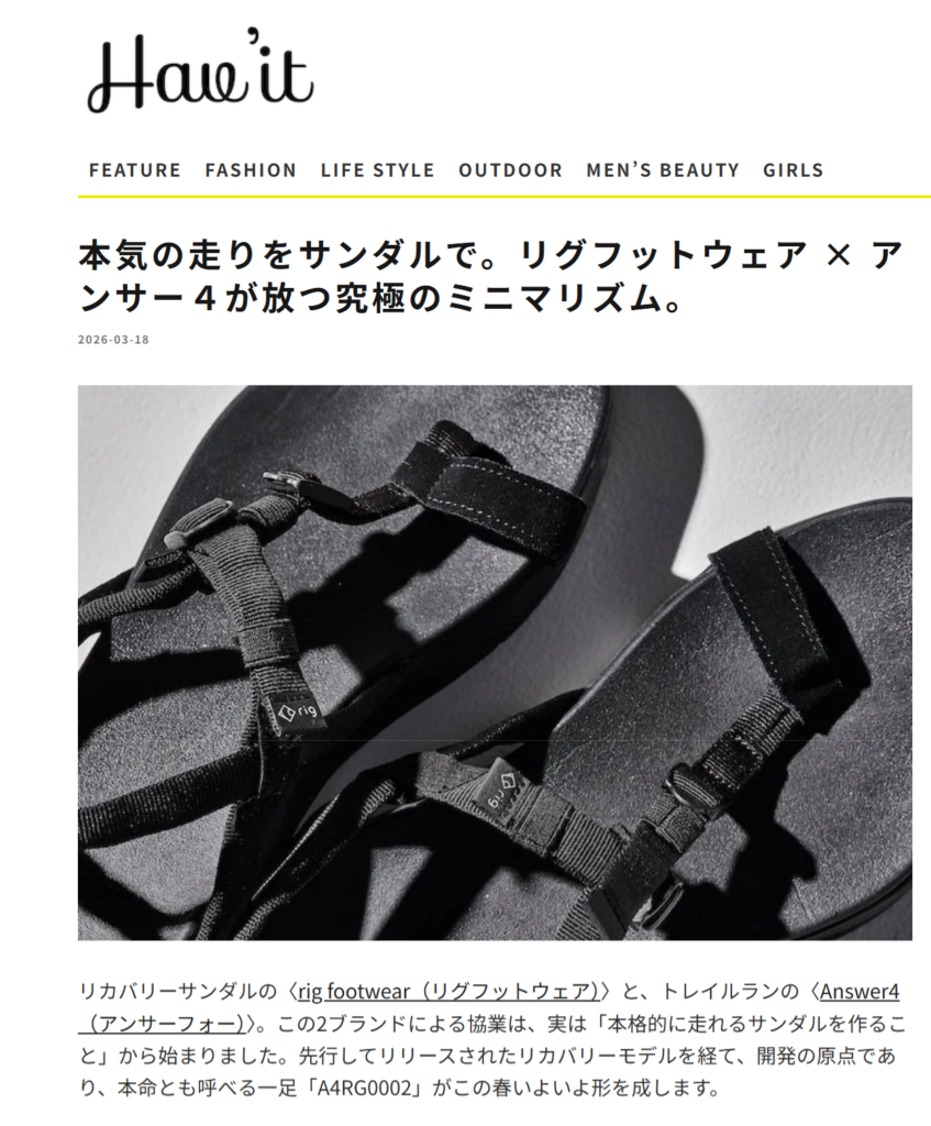 Havit magazine 2026.03.18 Wed - Posted 掲出ブランド rig FOOTWEAR rig FOOTWEAR Havit magazine rig FOOTWEAR【A4RG0002】 rig FOOTWEAR【A4RG0002】 rig FOOTWEAR【A4RG0002】 rig FOOTWEAR【A4RG0002】 rig FOOTWEAR【A4RG0002】 NEWS PRESS 掲出ブランド rig FOOTWEAR