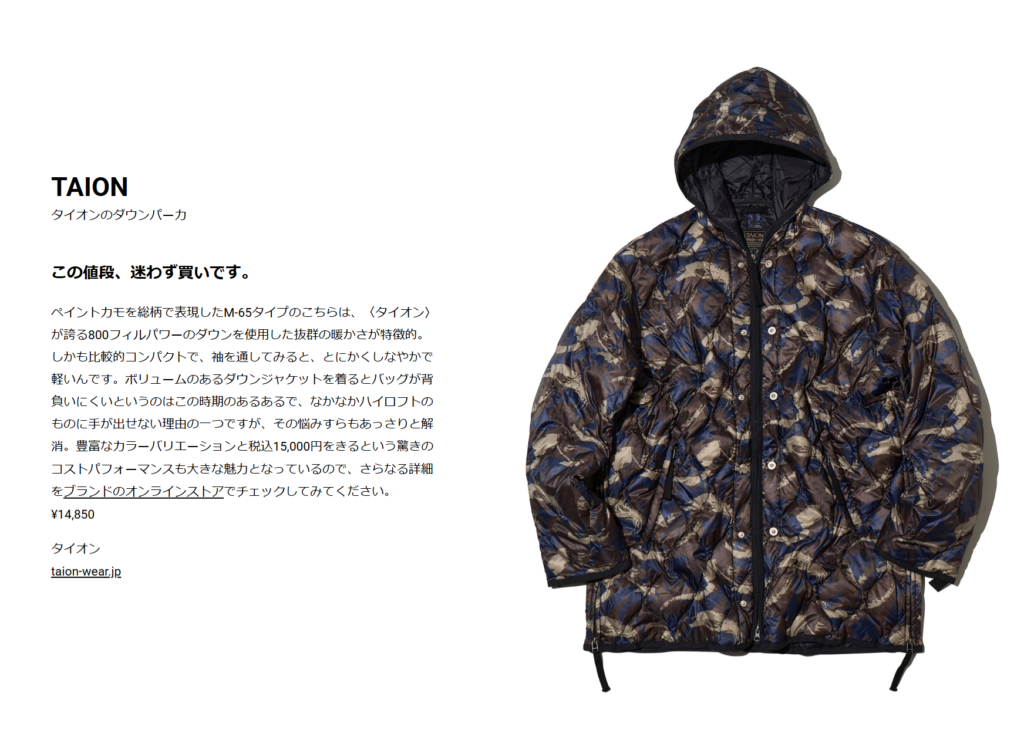 HOUYHNHNM 2026.01.30 Fri - Posted 掲出ブランド TAION TAION HOUYHNHNM TAION【ミリタリー M65 Wジップ ダウンパーカー-ソフトシェル】 NEWS PRESS 掲出ブランド TAION