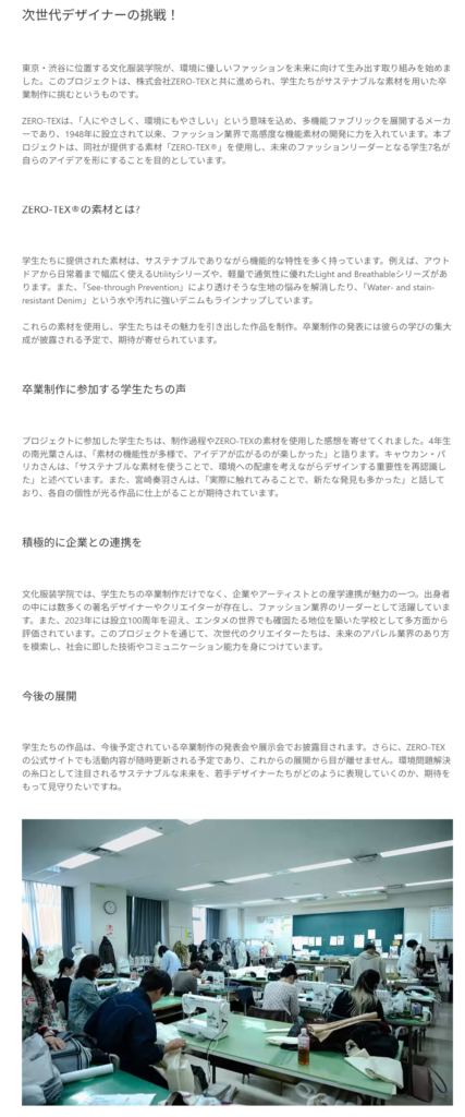 JOCEE 2026.01.20 Tue - Posted 掲出ブランド ZERO-TEX ZERO-TEX JOCEE ZERO-TEX×文化服装学院 文化服装学院 ZERO-TEX NEWS PRESS 掲出ブランド ZERO-TEX