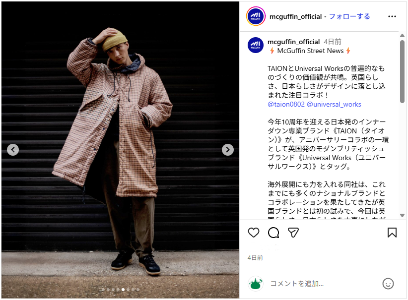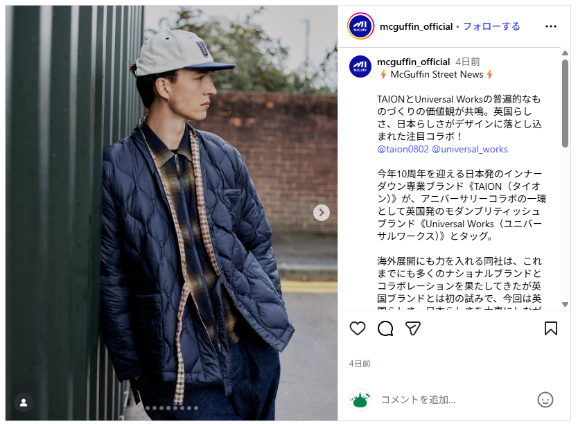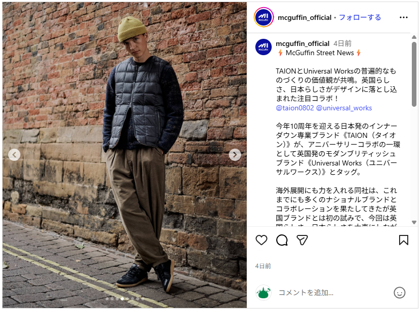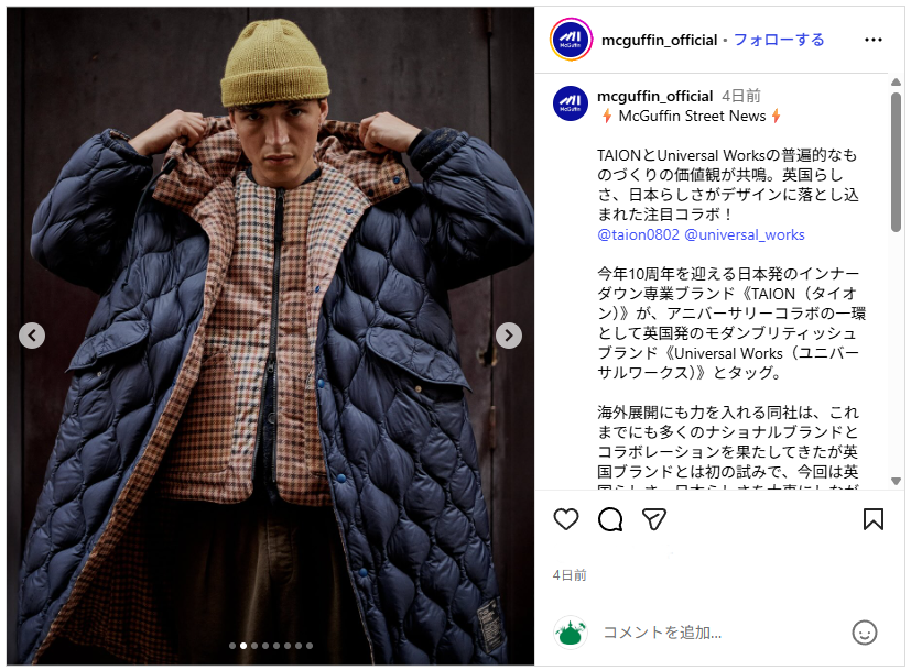 McGuffin 2025.11.12 Wed - Posted 掲出ブランド TAION TAION McGuffin TAION×Universal Works TAION×Universal Works TAION×Universal Works TAION×Universal Works NEWS PRESS 掲出ブランド TAION