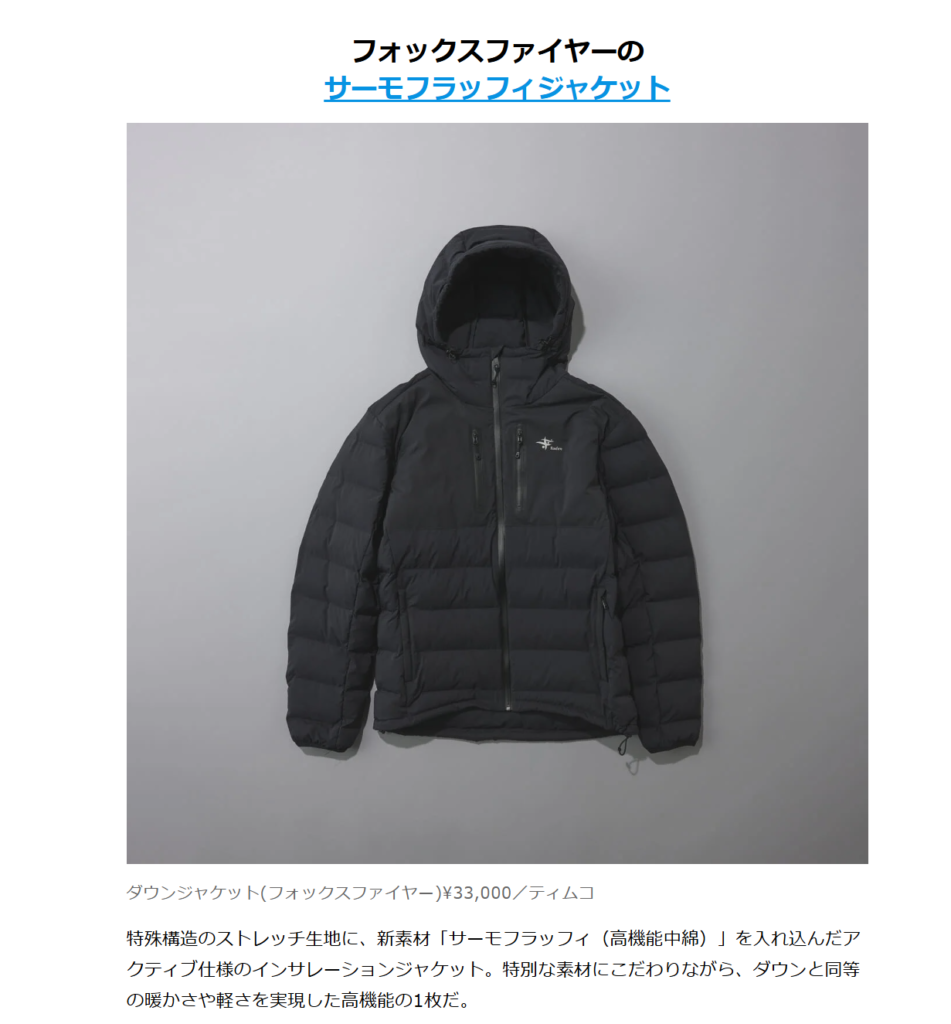 MEN’S NON-NO 2025.12.20 Sat - Posted 掲出ブランド FoxFire Foxfire MEN’S NON-NO Foxfire【サーモフラッフィジャケット】 Foxfire【サーモフラッフィジャケット】 Foxfire【サーモフラッフィジャケット】 NEWS PRESS 掲出ブランド FoxFire