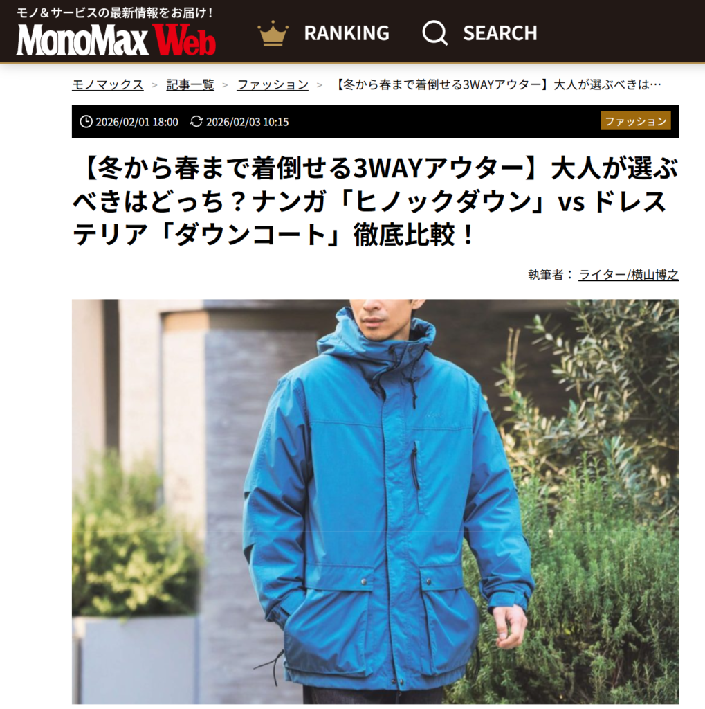 Mono Max WEB 2026.02.01 Sun - Posted 掲出ブランド NANGA NANGA Mono Max WEB NANGA NANGA【ヒノックダウン 3イン1 ジャケット】 NANGA【ヒノックダウン 3イン1 ジャケット】 NANGA【ヒノックダウン 3イン1 ジャケット】 NANGA【ヒノックダウン 3イン1 ジャケット】 NANGA【ヒノックダウン 3イン1 ジャケット】 NEWS PRESS 掲出ブランド NANGA
