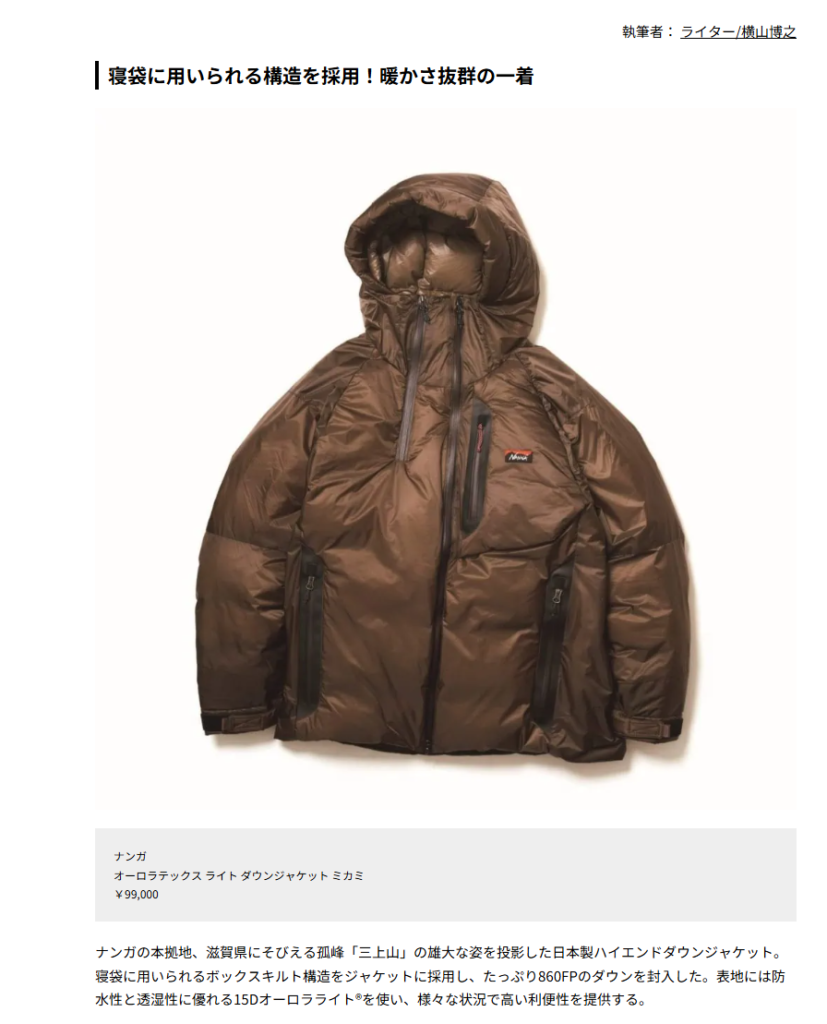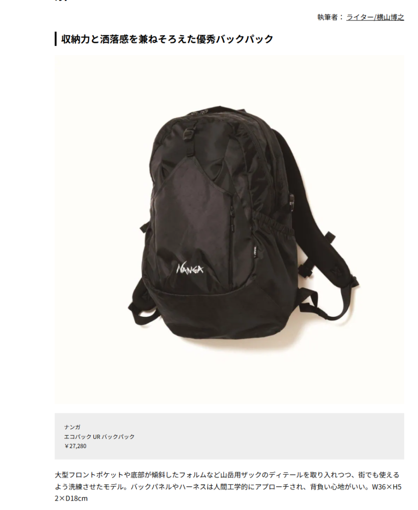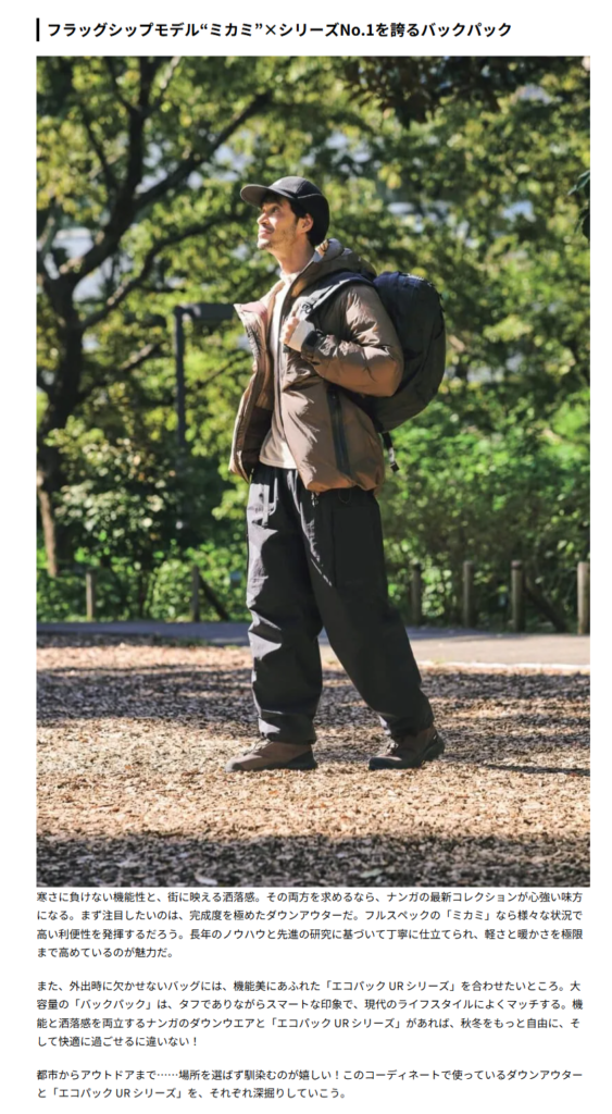 MonoMax WEB 2025.12.09 Tue - Posted 掲出ブランド NANGA NANGA MonoMax WEB NANGA NANGA【オーロラテックス ライト ダウンジャケット ミカミ】 NANGA【エコパック UR バックパック】 NANGA【エコパック UR バックパック】 NEWS PRESS 掲出ブランド NANGA