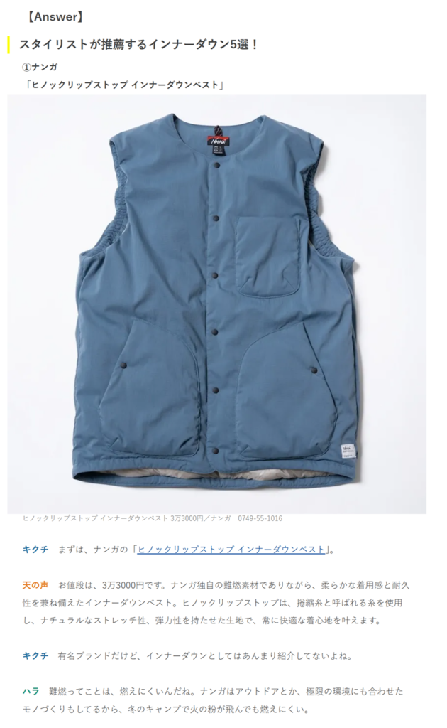 OCEANS WEB 2025.11.28 Fri - Posted 掲出ブランド NANGA NANGA OCEANS WEB NANGA【ヒノックリップストップ インナーダウンベスト】 NANGA【ヒノックリップストップ インナーダウンベスト】 NANGA【ヒノックリップストップ インナーダウンベスト】 NANGA【ヒノックリップストップ インナーダウンベスト】 NEWS PRESS 掲出ブランド NANGA