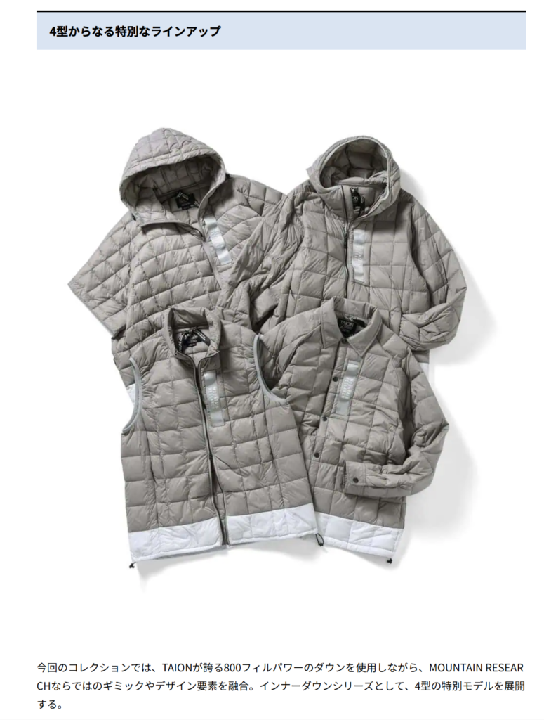 smart Web 2025.11.18 Tue - Posted 掲出ブランド TAION TAION smart Web TAION×MOUNTAIN RESEARCH TAION×MOUNTAIN RESEARCH【Down Poncho】 TAION×MOUNTAIN RESEARCH【Down Zip Vest】 TAION×MOUNTAIN RESEARCH【Down Zip Parka】 TAION×MOUNTAIN RESEARCH【Down Coach Jacket】 NEWS PRESS 掲出ブランド TAION