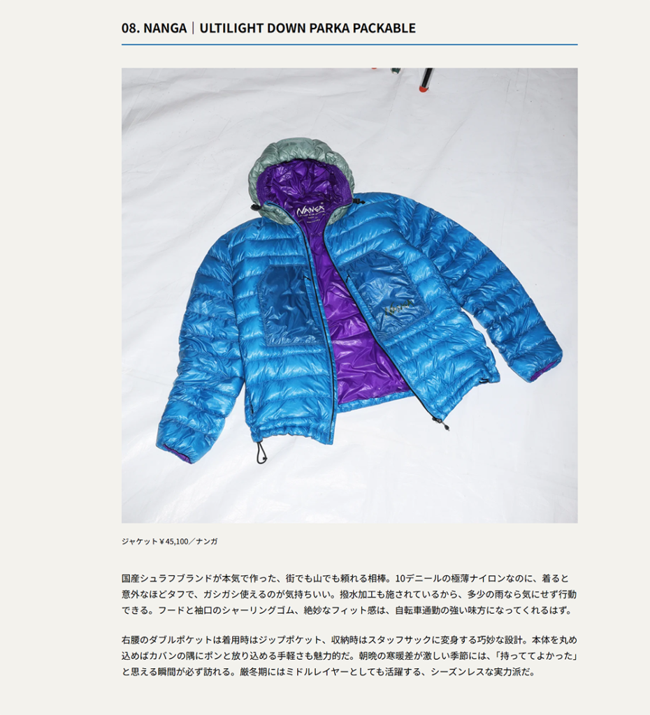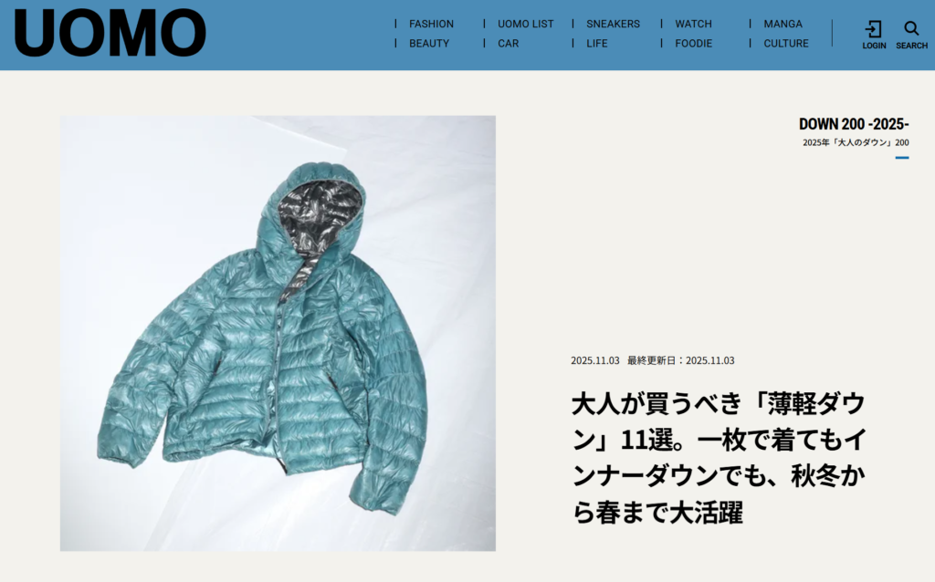 UOMO WEB 2025.11.03 Mon - Posted 掲出ブランド NANGA NANGA UOMO WEB NANGA【ULTILIGHT DOWN PARKA PACKABLE】 NEWS PRESS 掲出ブランド NANGA