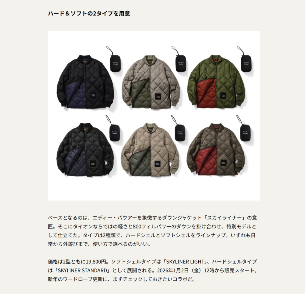 UOMO WEB 2026.01.01 Thu - Posted 掲出ブランド TAION TAION UOMO WEB TAION×Eddie Bauer TAION×Eddie Bauer NEWS PRESS 掲出ブランド TAION